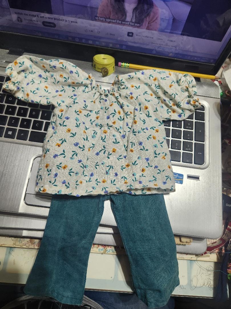 Some of my doll clothing is cooler than others. Most of my fabric has been saved from garage and estate sales. I hate to see useful things go into the trash. I don’t buy thread that way, but fabric can easily be washed. This needs a cute hippy belt in the colors of the shirt. Probably a diamond pattern but I’m a slow bracelet maker as I never had many friends growing up, so I didn’t have much call to make friendship bracelets like my classmates. Nor would anyone teach me any patterns beyond a chevron.